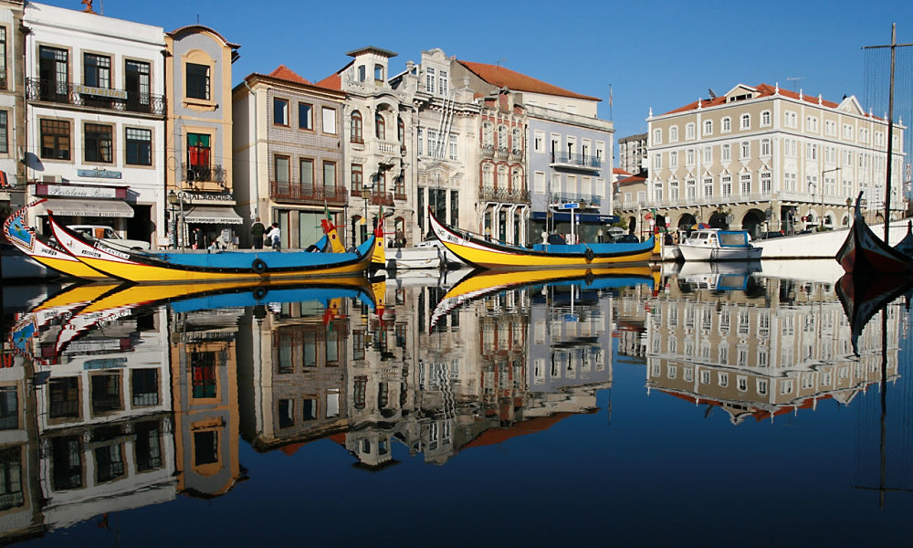 Cidade com canais da Ria de Aveiro conhecida como Veneza Portuguesa.